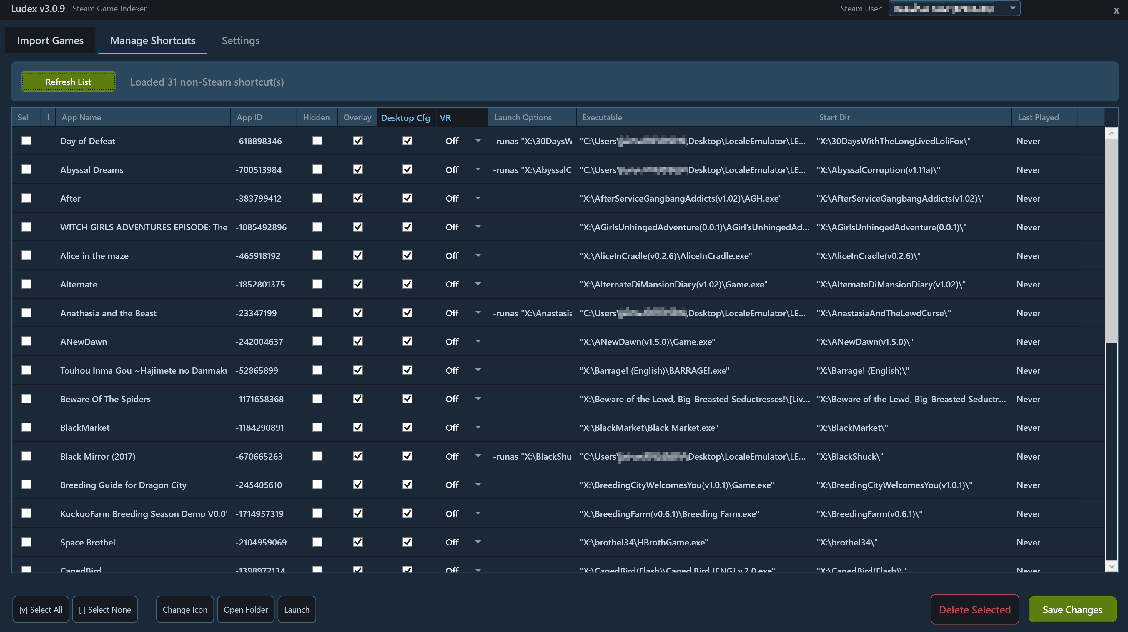 Manage Existing Shortcuts Not just for importing — Ludex also lets you view, edit, and remove your existing non-Steam shortcuts. Change icons, update launch options, or clean up old entries.